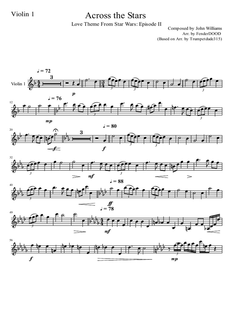 Drive.google.com/open?id=0bz6sulzjtypdbedjeu90uxj4vfk this is a star wars rendition for 3 violins. Find the free sheet music for this piece here. 2001 david bruce spanish violin. Violin 1 across the stars.