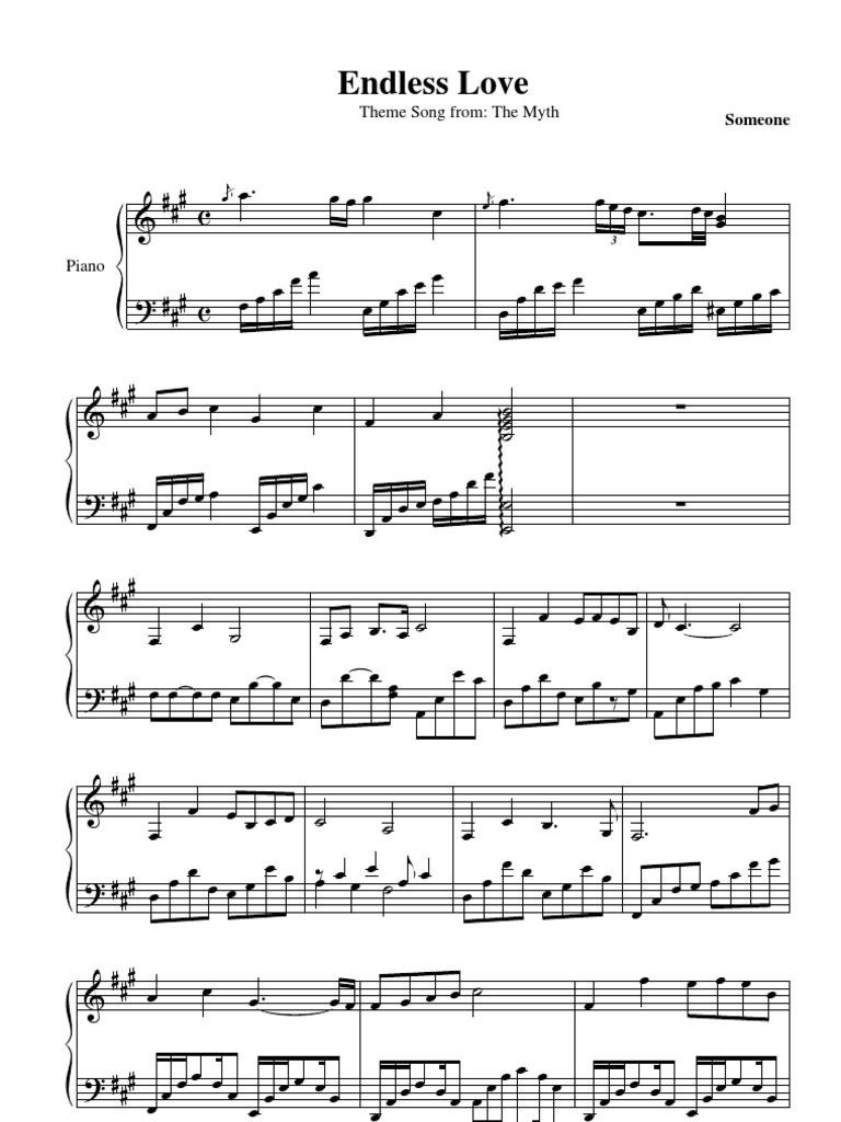 High quality piano sheet music for endless love (美丽的神话) by the myth.